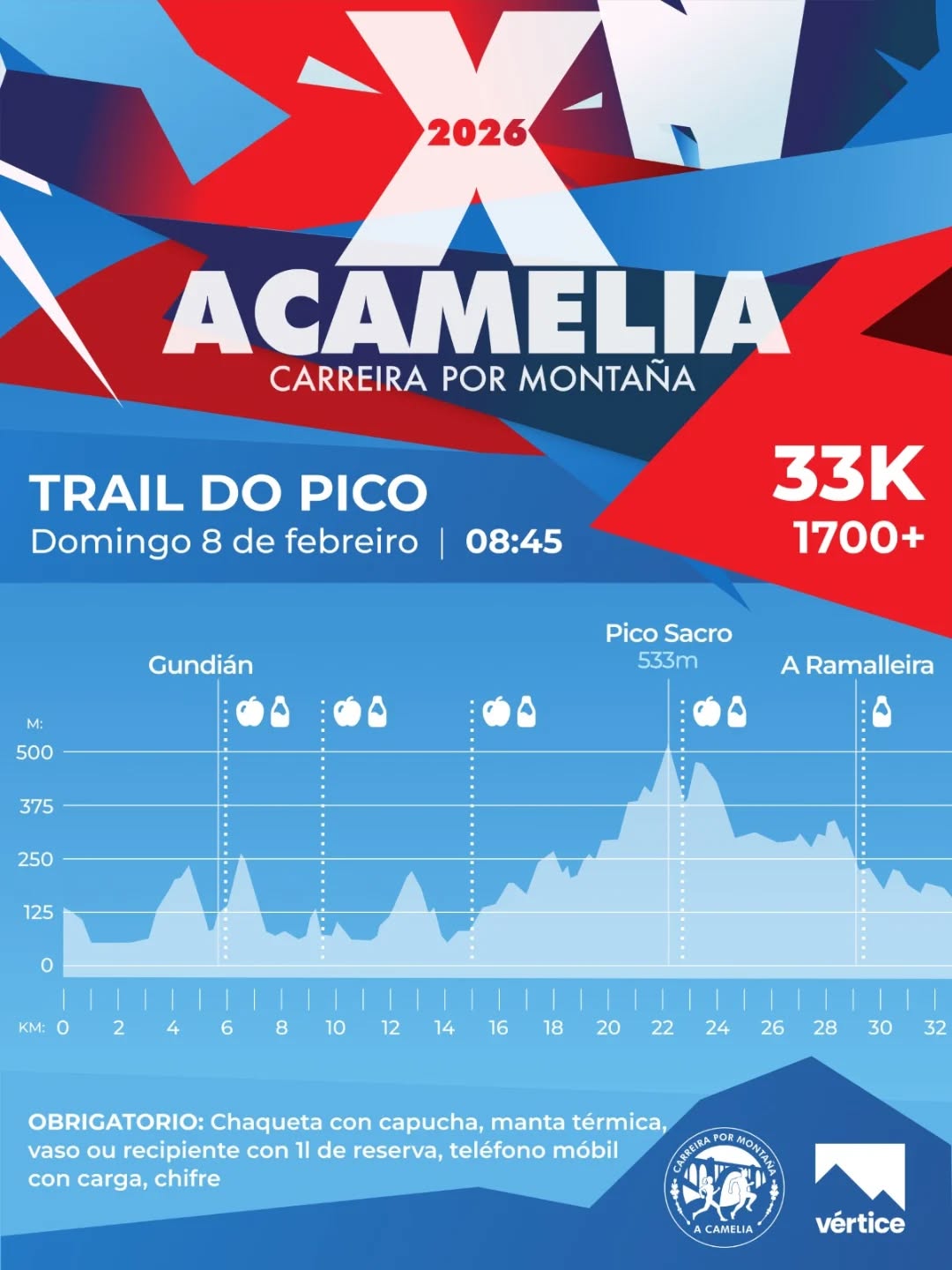 X CARREIRA POR MONTAÑA A CAMELIA CO CLUB VÉRTICE POR MONTAÑA. SÁBADO 7 E DOMINGO 8 DE FEBREIRO DE 2026. Cartelería